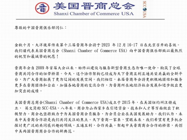 美国晋商总会预祝第十三届晋商年会圆满成功