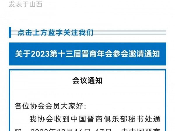 新疆山西商会向会员发出2023第十三届晋商年会参会邀请通知