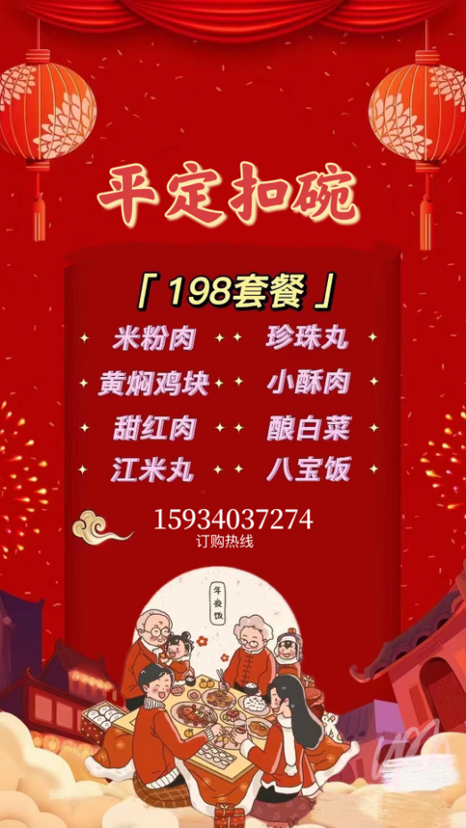 米粉肉、珍珠丸、黄焖鸡块、小酥肉、甜红肉、酿白菜、江米丸、八宝饭