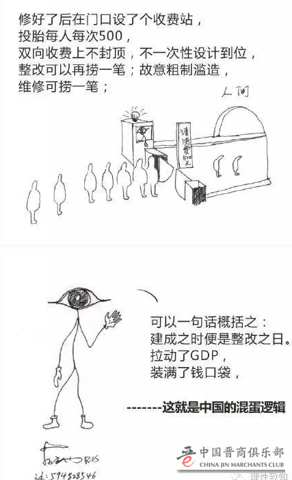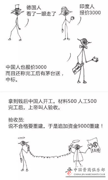 然而,这种极尽聪明才智的背后是,有的人走后门搞工程,有的人塞票子中投标,然后,有了豆腐渣桥梁,有了塑料板井盖,有了毒奶粉等等。这种“一切向钱看”的混蛋逻辑不可取,投机取巧终会自食苦果。