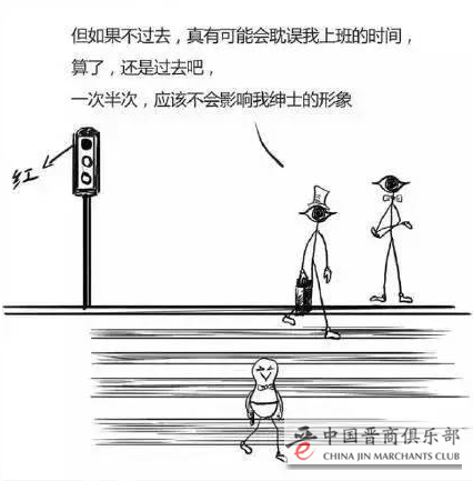 就好像,你看到有人在草坪里踩出一条捷径,你站在那里不知所措,你知道从这里走是不对的,但是走大路要绕远一倍的距离。你看到很多人都从这里走过,你看到捷径上的小草早就被踩死,你在心里告诉自己:这路不是我踩出来,即使我不走别人也会走,小草还是会死。于是,你成功说服自己,和大家一起从草坪穿过。