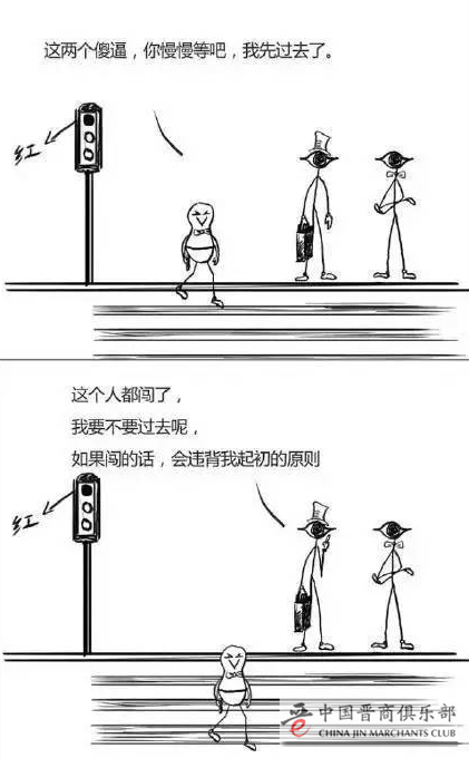 像这样的人多了,就成了社会风气,带动更多像你一样的人加入这种风气,于是雪球越滚越大,就成了一个民族、一个国家的思维。这是一种悲哀。然而,如果你在一开始就能坚守原则,那么,所有的一切都将逆转。所以,请坚信你的力量,你的行动能改变这种混蛋逻辑,因为你不仅是你自己,你也是中国的国民。