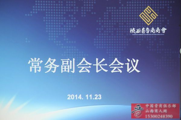 2014年11月23日,陕西晋商商会常务副会长会议在商会秘书处隆重召开,会议由陕西晋商商会会长、立丰集团董事长颜明先生主持,陕西省晋商商会监事会主席张鹏、陕西省晋商商会执行会长党军师、秘书长姚剑锋以及常务副会长和部分副会长出席会议,研讨2014年陕西晋商商会会员大会和2015年陕西晋商商会慈善春晚事宜,中国晋商俱乐部秘书长、山西商人网创始人、晋商年会总策划刘文斌和中国晋商俱乐部山西区域总监韩青峰作为特邀嘉宾列席会议。