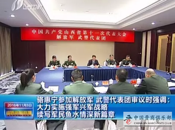 在认真听取代表们发言后,骆惠宁同志说,长期以来,广大驻晋解放军和武警官兵在扎实推进军事斗争准备、有效提升履行核心使命能力的同时,大力发扬情系人民、英勇顽强的优良传统和过硬作风,把驻地当故乡,积极为山西发展和稳定大局保驾护航,在脱贫攻坚、抢险救灾、维稳处突、双拥共建等方面发挥了重要作用,作出了宝贵贡献。这次省党代会站在新的历史起点上,全面谋划治晋理政思路和举措。党代会报告审议通过后,将成为引领全省未来五年乃至更长一个时期各项事业发展的行动指南。实现报告提出的目标任务,离不开驻晋部队的积极参与和共同努力。借此机会,我代表省委、省政府和全省人民,向广大驻晋解放军指战员和武警官兵表示敬意!