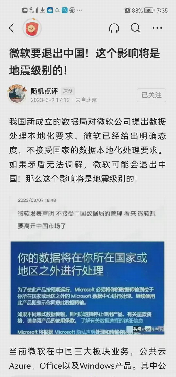 微软要退出中国,就是电脑操作系统的主权之战,现在微软可以用它的市场占有率要挟中国,可以看出当年操作系统的重要,而且这个会有连锁反应,因为微软背后还有英特尔,对国产芯片的考验也更艰巨了。