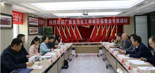 2023年3月15日,广西自治区工商联副主席叶俊茂一行,在山西省工商联党组成员、副主席李剑英陪同下莅临山西省广东 商会(晋商俱乐部联合发起机构),就“清廉民企建设”、“诚信商会、诚信民企建设”、“法治建会”方面的多个议题进行了调研座谈。李剑英副主席主持本次会议。