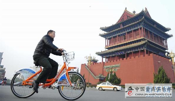 核心提示:11月16日,一名市民骑着公共自行车从山西省临汾市鼓楼旁经过。当日,山西省临汾市首批2000辆公共自行车正式启用,城区设有64个公共自行车站点,市民可通过扫码和刷卡两种方式租借,1小时内免费使用。
