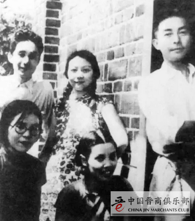 鹿地亘(后左一)与池田幸子(前左二)、绿川英子(前左一)、冯乃超(右一)等人的合影
