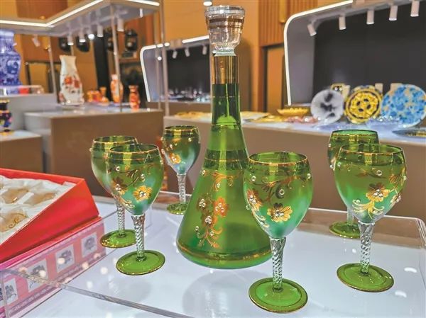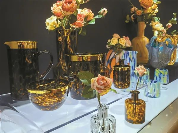 精美的玻璃器皿吸引众多客商驻足观赏洽谈