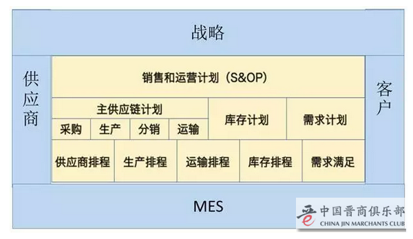 如图2:供应链管理黑盒子的上层是公司战略层,下层是MES(制造企业生产执行系统)。从纵向集成这个维度,与战略层最近的是S&OP(销售和运营计划),与MES最近的是排程。