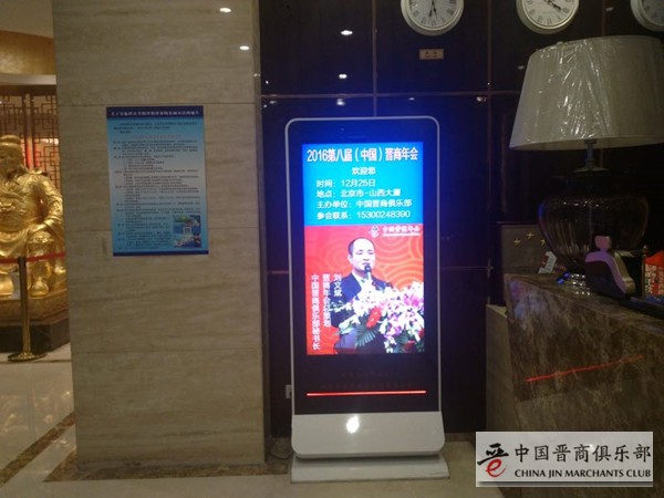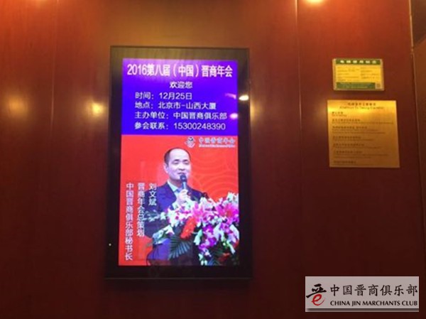 中国晋商俱乐部永久理事百平传媒董事长任梓涵倾情支持第八届晋商年会,调动其麾下位于北京各大驻京办酒店的100多个LED终端,每天投放近1个小时多的广告时间,专门宣传第八届晋商年会、入榜企业等相关动态,分多批次陆续投放。