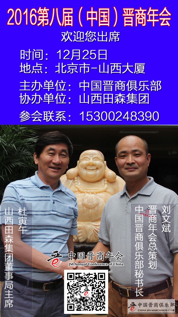 2016第八届晋商年会将于12月25日在北京召开,晋商年会创立于2009年,由中国晋商俱乐部主办。