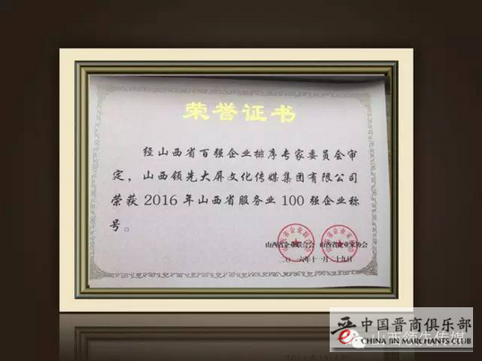 11月29日上午,由山西省企业联合会、山西省企业家协会主办的2016山西省企业100强发布会在太原举行。经2016年山西省百强企业排序专家委员会审定,山西领先大屏文化传媒集团有限公司荣获“2016年山西省服务业100强企业”称号,这是继2014年再一次获此殊荣。