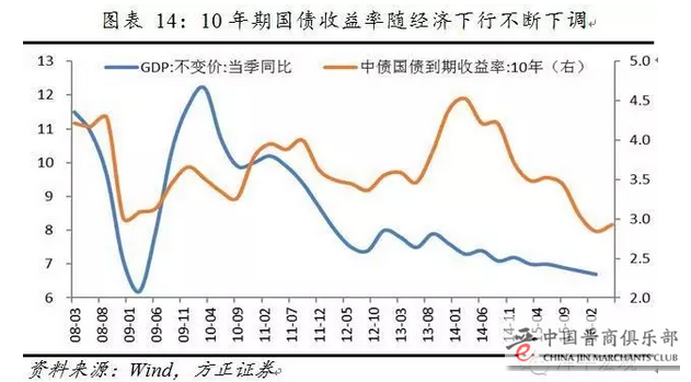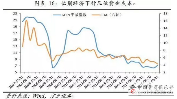 中国利率市场化以来,资产对绝对收益不断下降。2015年下半年的长久期债、2016年初的低信用债、2016年一季度的信托票据产品以及2016年二季度的委外资金的收益率分别出现了相对其他品种更快的下降,资金在一点一点地通过加大风险容忍度来换取高收益。