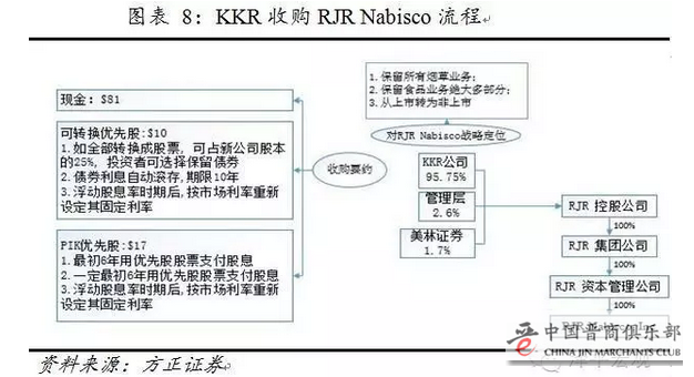 KKR的成功收购,垃圾债的作用可谓功不可没,在总交易金额250亿美元中,KKR自身资金仅有1500万美元,仅占总金额的0.06%,其余资金几乎都是垃圾债券大王米尔肯发行垃圾债券筹得,杠杆之高,令人惊叹。