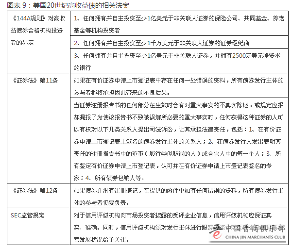 在当时美国对高收益债发行者的限制大致有两点:其一是高收益债的发行对象是被严格限制的,按照当时的法律,其只能对“不需要受强制信息披露制度保护并且‘自己可以照顾自己’的对象发行”。其二是发行人需要遵循证券法所规定的其他义务,尤其是“反欺诈法”(具体细节可见下表)。从这系列制度来看,并未有融资收购的禁行字眼,这在一定程度上也为米尔肯的高收益债融资收购形成了比较自由的制度基础。