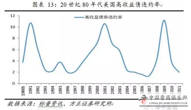 高收益债在70-80年代的盛行也催生了资产泡沫。80年代末,关于高收益债的负面新闻开始鹊起,高收益债市场受到情绪、监管、信贷紧缩等一系列因素影响,其市场承受了巨大的抛压,债券违约率迅速攀升。整个80年代,高收益债的平均违约率仅仅不到4%,到了1991年,高收益债的违约率蹿升至11%左右的空前高位。