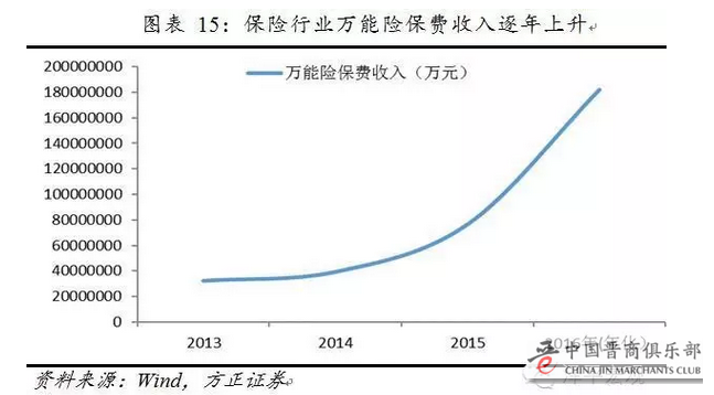 实际上,在过去的三年里,万能险已经表现出了非常快的发展速度,从今年来看,相对于2013年其保费增长5.6倍,复合年增长率78%,这个发展速度在很大程度上来自于其较高的收益水平。
