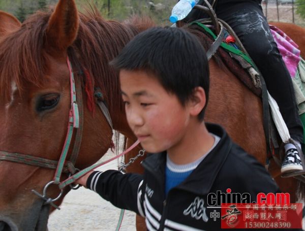 12岁的尹俊飞在不上学,休息之余,总会和父亲一起忙活生计,载着游客往返于山路,带游客体验一种不同的生活方式。他总会用默默的走在马前面,为父亲和游客寻找平坦的道路,也会帮游客牵起马,来稳定马的速度。用马匹运输游客,是尹俊飞家里维持生活的主要生计。平时都是父亲一个人在忙活,因此,尹俊飞只要不上学,就会帮父亲的忙。在山路上,总会看到尹俊飞瘦弱的身影,随着马匹来回的奔波。
