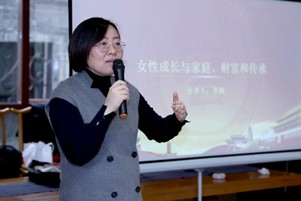 会上,商会会员、北京中银(成都)律师事务所律师李枫以‘女性成长与家庭、财富和传承’为主题,从个人的人生、职业经历出发,分享了自己在家庭、事业中从被动改变到掌握主动权的历程,还有自己对女性在家庭财富传承中的角色、发挥的作用的理解和看法。