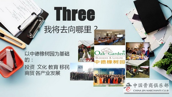 我在海外的这几年,我跟我的团队一起创立了中德橡树园这样的一个项目,这个项目其实跟我们中国晋商俱乐部这样一个平台是有一定的类似的,我们这样一个平台为更多的中国企业家可以去欧洲、去德国去发展他们的生意,为他们可以在那里定居,为他们的孩子可以在那边享受更好的教育,我们搭建了这样一个平台。