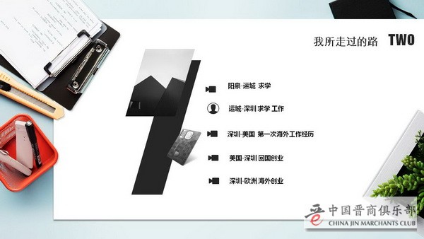 我努力的路上首先就从阳泉去到了运城求学,第二步我又从山西的运城去到了深圳,又去工作、求学。后来我从深圳去到了美国,开启了我第一次海外工作的经历。当然,在美国工作了一年之后,我想想看,我还是要回来,然后我就回到了深圳,开始了我的第一次创业。我在深圳创业几年之后,后来有一个很偶然的机会,我去到了德国,然后开启了我的海外创业的经历。