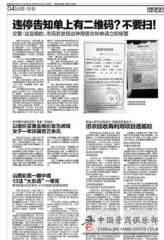 2016年12月24日以来,太原市万柏林辖区接连发生多起路边停放车辆被贴违法停车告知单,要求车主通过扫描二维码缴纳罚款的诈骗警情。时值太原市交通违法行为专项整治深入推进的关键阶段,交警支队指挥中心获悉情况后,立即调取涉事车辆停车位置及附近的相关视频资料。同时,万柏林分局立即成立专案组,围绕此类警情的特点和案发信息,走访询问车主,同时对嫌疑人手机、微信和银行账号展开反复核查,多角度、全方位追踪布控。