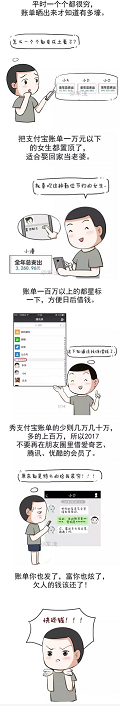 今年的支付宝年度和往年一样刷屏朋友圈,吐槽和炫富共存,段子手满天飞。