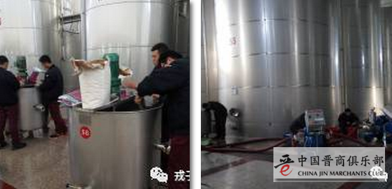 为了保证节后可以尽早的冷冻处理,2016年桃红、干白、玫瑰香在节前需进行皂土下胶,皂土经过一天的活化后,第二天均匀加入到酒中。