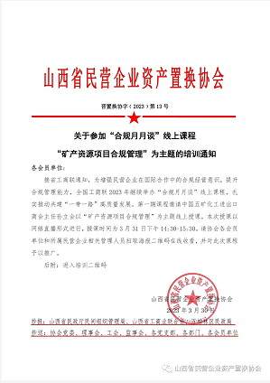 核心提示:关于参加合规月月谈线上课程矿产资源项目合规管理为主题的培训通知