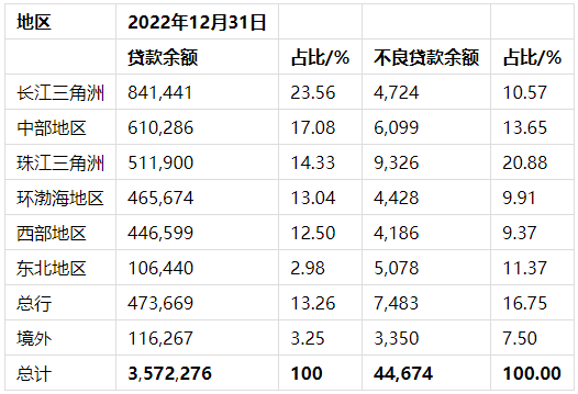 表2: 光大银行2022年分地区贷款和不良贷款余额(百万元)