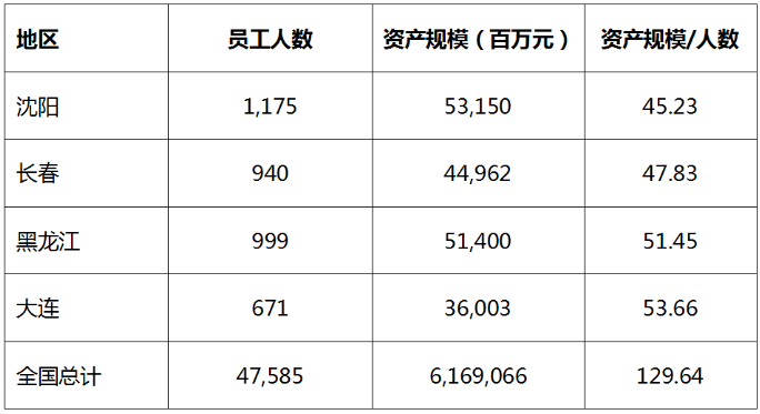 从员工效率和成本的角度来分析,单员工资产规模(即地区的资产规模除以员工人数)金额越大证明产出越大,效率越高。银行作为一家商业机构,必须保持合理的成本和高效的运作,才能更好地服务客户和赚取利润。从单员工资产规模看,东北地区的黑龙江、长春、沈阳、大连均远低于其他地区,甚至低于各行平均值的半数,这也可能意味着该地区存在一定程度的人浮于事,或者工作效率不高的情况。光大银行需要加强内部管理、控制风险、提高贷款质量,同时提高员工效率和降低成本,才能保持健康的发展。毕竟储户无法接受国有银行连年大额亏损的现实状况。此外,据《存款保险条例》,万一银行破产,储户最多只能获得50万的赔付。