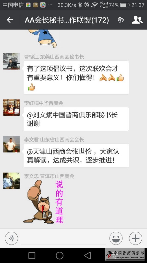 此活动很有意义,既密切了感情,又把世界各地晋商联系到一起,谢谢张会长,红梅会长!