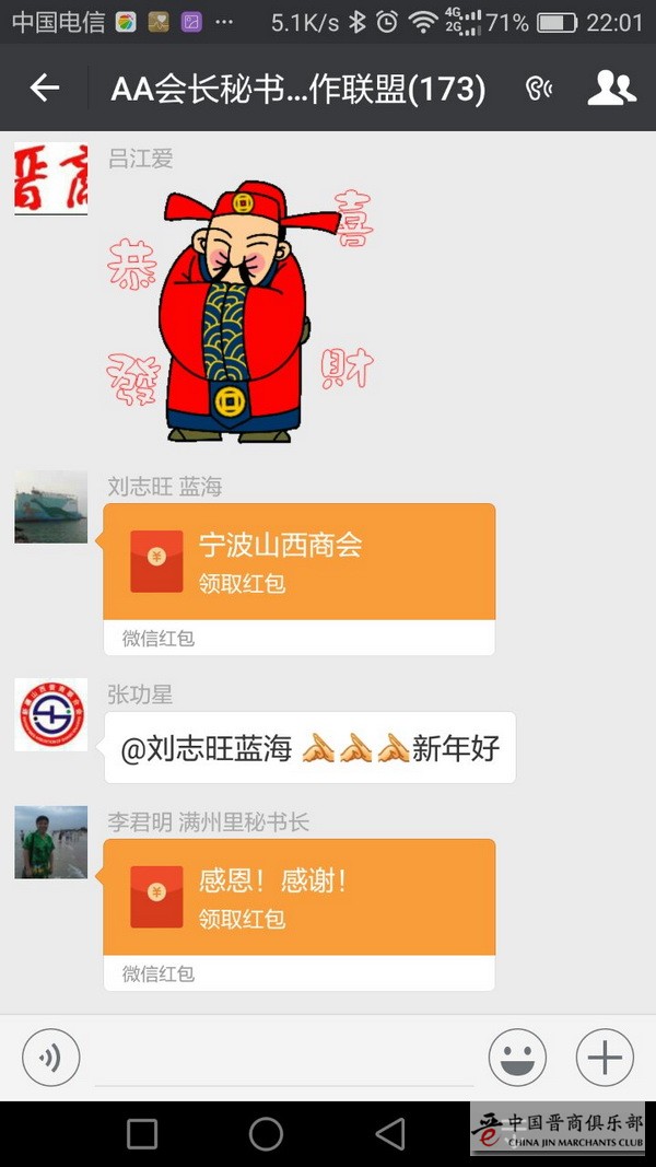潍坊山西商会梁川给各位会长、秘书长拜年了,祝各位老乡生意兴隆财源广[福]步步高升稳如山[福]阖家安康事如意[福]鸡年大吉又大利!