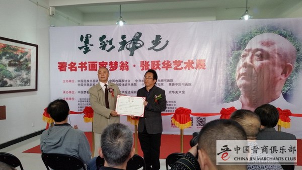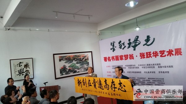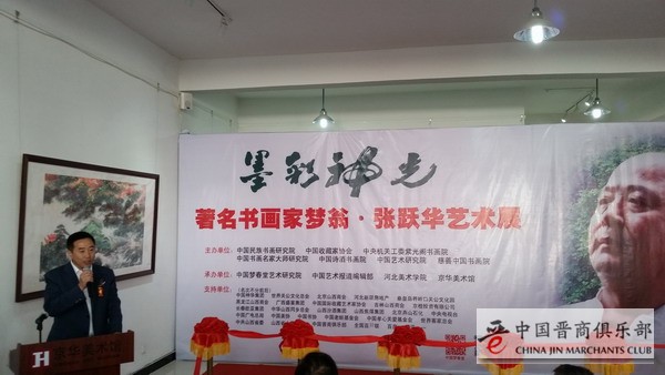 10月18日上午10点30分,由中国民族书画研究院、中国收藏家协会、中央机关工委紫光阁书画院、中国书画名家大师研究院、中国诗酒书画院、中国艺术研究院、慈善中国书画院主办,中国梦春堂艺术研究院、中国艺术报道编辑部、京华美术馆、河北美术学院承办,“墨彩神光——著名书画家梦翁·张跃华艺术展”在北京通州宋庄小堡京华美术馆举行。