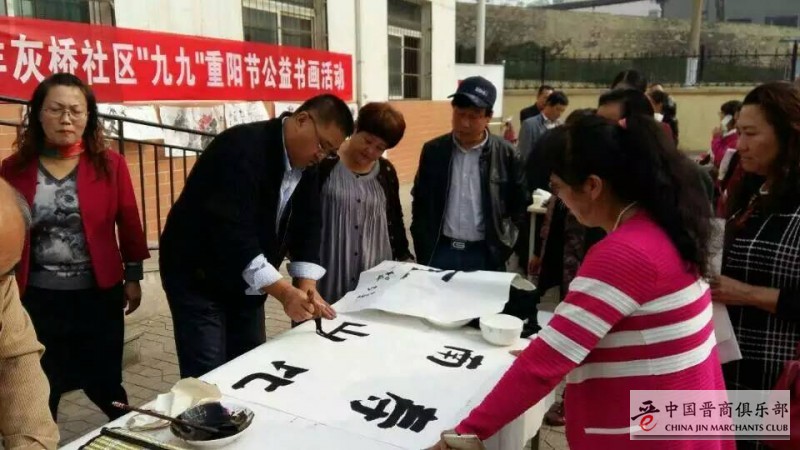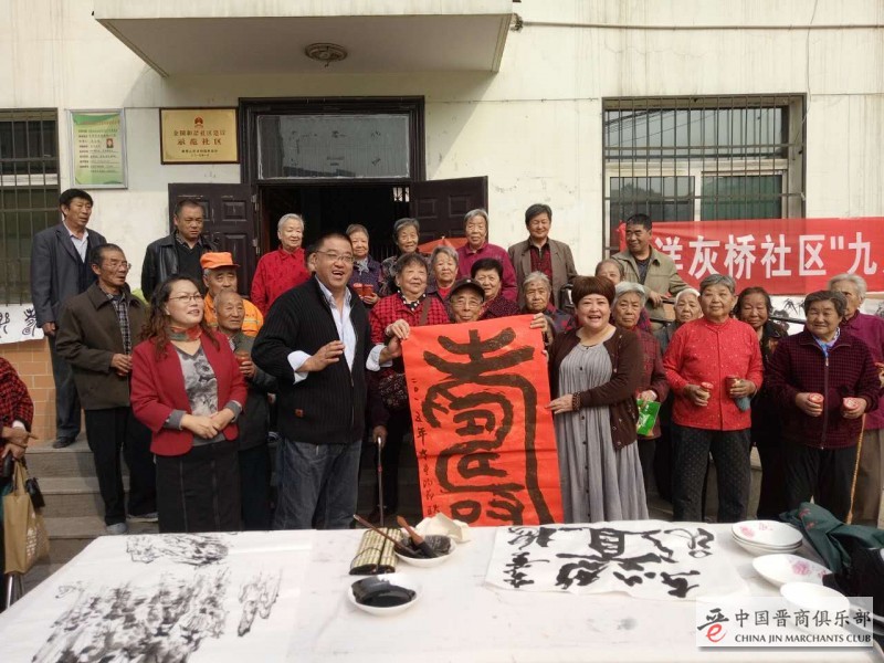 10月19日,山西田园诗歌文化传媒公司携田园诗歌书画院,联合中国晋商俱乐部、中国健康杂志社、食品界杂志社、东山煤矿工会、杨灰桥社区于太原市东山杨灰桥社区举行了“重阳节送温暖、送健康、送书画进社区“活动。