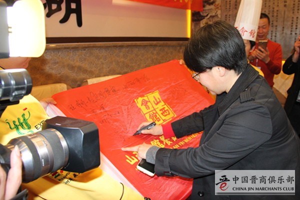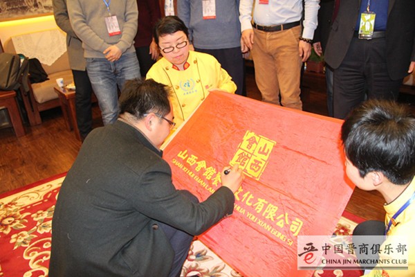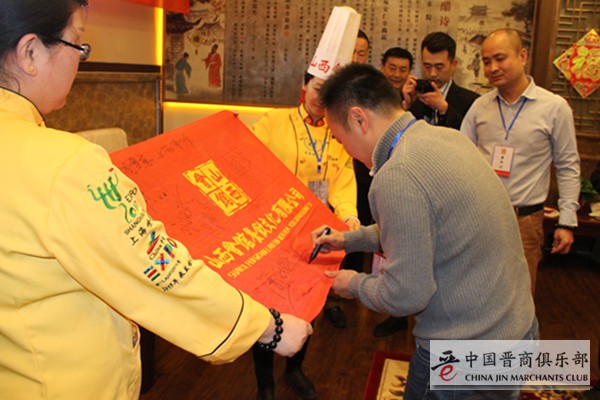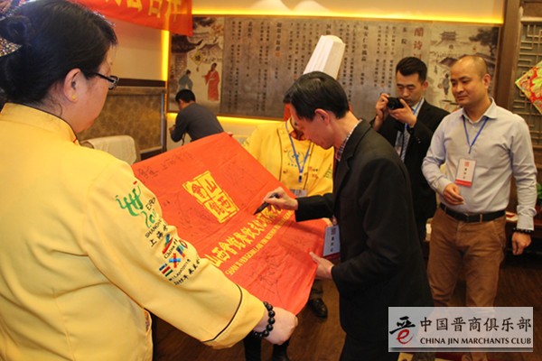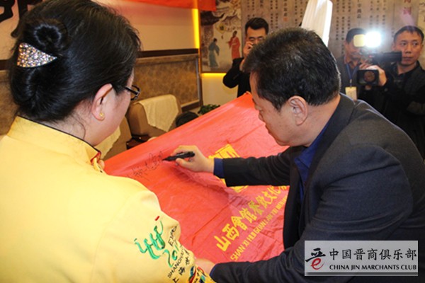 会议结束后,各来宾在山西会馆旗帜上签字并合影留念。