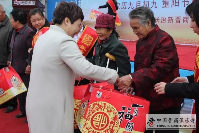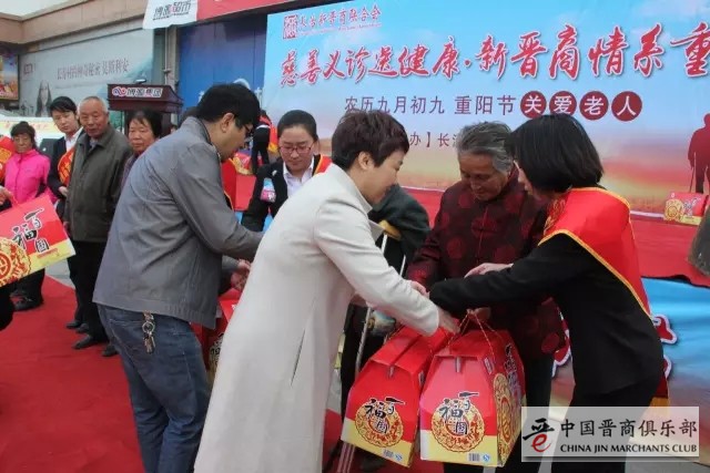 启动现场,长治新晋商联合会为十名贫困老人颁发慰问品。