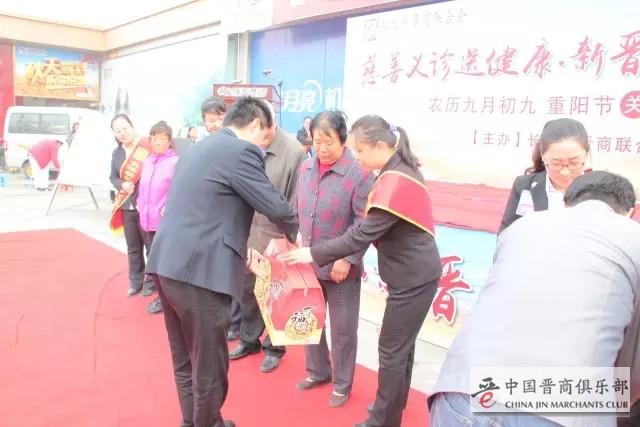 长治新晋商联合会相关领导为现场200余名老年朋友们提供了近1000余份的爱心礼品。