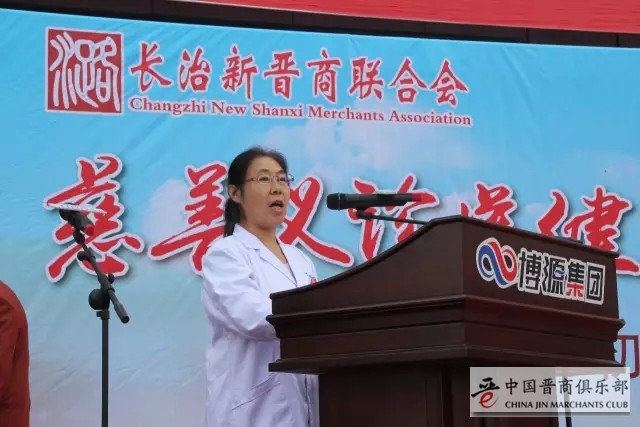 在启动仪式上,长治新晋商联合会执行会长、长治市物华商贸有限公司董事长田俊丽女士代表长治新晋商联合会致辞。她说,长治新晋商联合会主办“慈善义诊送健康、新晋商情系重阳节”活动,旨在面向社会大力宣传新型“孝”文化,努力营造敬老、爱老、养老的良好社会氛围,充分体现新晋商的社会责任。