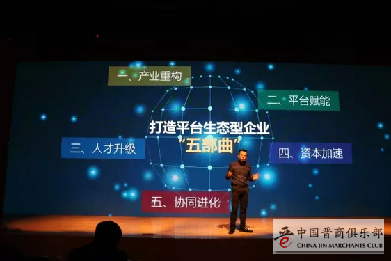 今天要讲的命题,打造平台生态型企业的心法和手法,分为五个部分——第一,产业重构;第二,平台赋能;第三,人才升级;第四,资本加速;第五,协同进化。
