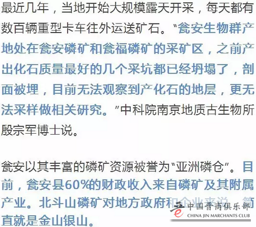 贵州瓮安县北斗山磷矿保存了全球最古老的动物化石(约距今6.1亿年前),在寒武纪之前的特异埋藏动物群中均属首屈一指,也是目前研究地球生命演化早期历史的唯一窗口。然而当地大量露天开采,送往磷肥厂,[泪] 现在快被挖没了 !科学家们急了!