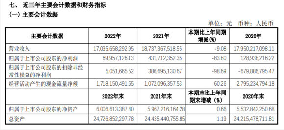 4月14日,阳煤化工(600691)近日发布2022年年度报告,报告期内公司实现营业收入17,035,658,292.95元,同比减少9.08%;归属于上市公司股东的净利润69,957,126.13元,同比减少83.80%。