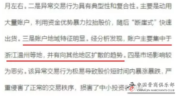 稍后,上交所在新闻发布中“做了补充”,首次点了温州的名,而且对操纵市场手法有了更详细的描述。上交所是这样说的: