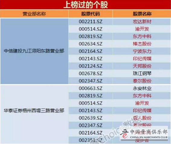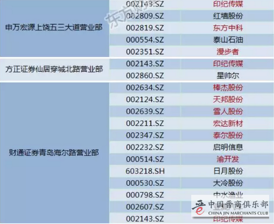而且,2016年11月以来,这5家营业部还分别在以下股票上榜过: