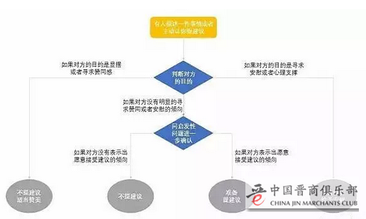 不是任何时候都需要或者应该提建议的,当别人明确征求你的建议的时候,也不见得就是真心寻求建议。按照下图所示,当别人描述一件事情或者主动让你提建议,一般有三种情况: