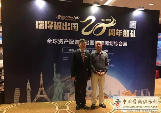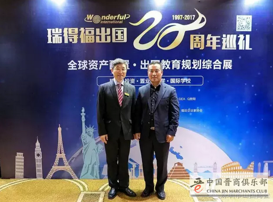 2017年4月15日,深圳市山西商会副会长单位、瑞得福出国集团“瑞得福20周年巡礼暨全球资产配置•家庭教育规划综合展”在大中华喜来登酒店6楼元厅顺利举行,有几百位来自各界的嘉宾参加了此次盛会。商会代理会长景苗军、执行副会长崔世杰、副秘书长白五平、殷俊根、多位会员及老乡参加了此次展会。