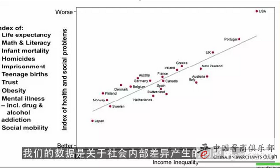 在演讲中,他利用统计研究和直观数据,列出一系列事实,告诉人们,当一个社会的不平等问题日益严重,它会在各个系统、各个方面表现得更差。