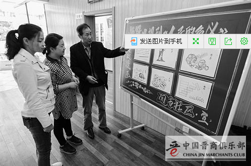 听见别人聊热播反腐剧 他自创廉政漫画黑板报