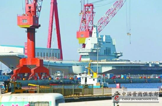 23日,国产航母在船坞中已经整装待发。